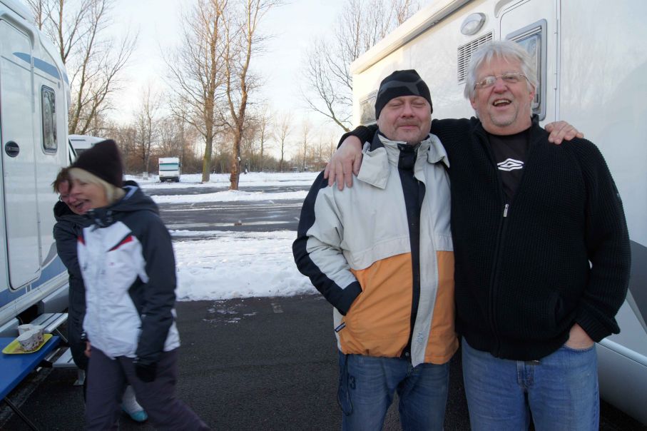 Svenskgänget möter upp och det visar sig att grannarna, ett par från Ystad i en Fendt husbil, samt deras goda vänner som just köpt en begagnad Laika i Tyskland, haft en toppenkväll. På restaurang Nordpolen serverades ett glas välkomstssekt, tapas, buffé och ett suveränt dessertbord. Detta för endast 29 euro per person och då ingick också en flaska bubbel vid tolvsnåret! Underhållningen bestod av en kille på synthesizer som spelade modern tysk allsång vilket fick de övriga gästerna att sjunga med. Lika roligt var det inte på Seestern där vi var igår...