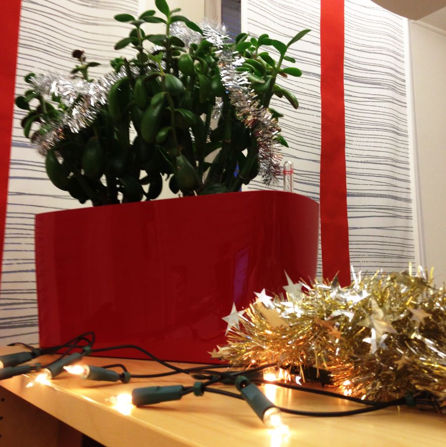 Efter jobbet igår bjöds hela förlaget på julbord. Det var trevligt att umgås över lite julskinka och jag tror att alla åkte hem väldigt mätta och nöjda. Min favorit var nog laxen! Jag hade tänkt ta ett foto hit till bloggen men det var helt enkelt för gott för att jag skulle kunna komma ihåg att ta upp kameran. Så länge bjuder jag på två bilder från mitt skrivbord, lite julfint har jag väl fått?
