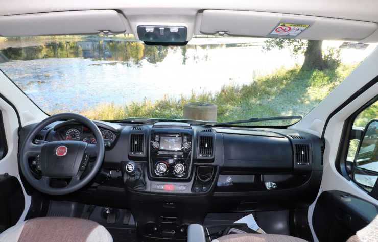 I förarhytten är vyn mycket bekant för oss som kört många hus-bilar, åtminstone bortsett från ratten.