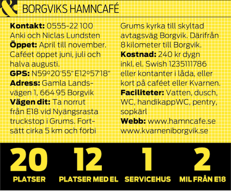 Förvaringsfickor finns vid båda sängarna och usb-kontakt finns vid vänstra sängen. På andra sidan finns ett 12V-uttag som är tänkt till en tv, då det finns tv-arm och framdragen antennkabel.