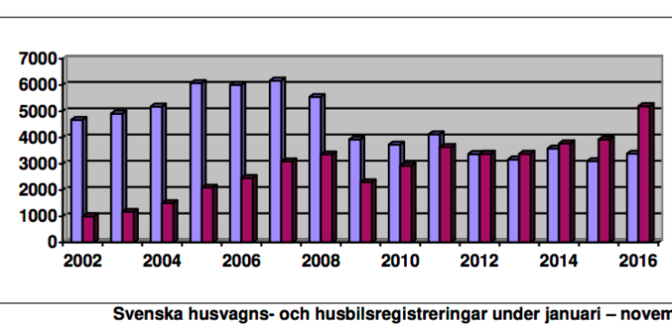 Fram till första december hade det under 2016 registrerats 5 197 husbilar, medan det under motsvarande period 2015 hade registrerats 3 924 stycken. I procent innebär detta en ökning med hela 32,44 procent för år 2016, en närmast sensationell ökning av husbilsintresset.