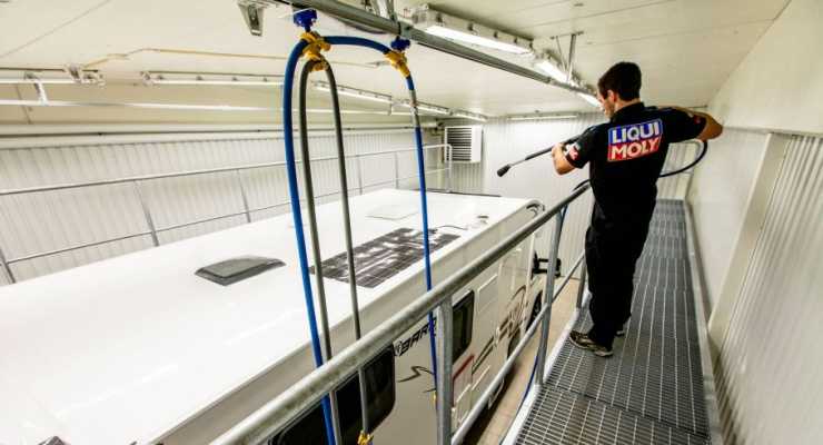 Att tvätta en husbil eller husvagn är inte riktigt lika enkelt som en vanlig personbil. Den tydligaste skillnaden är att campingfordonet är större, så ofta behövs någon form av specialhall, men också att man får vara försiktigare med fönster, ventiler, väggar och limfogar.
