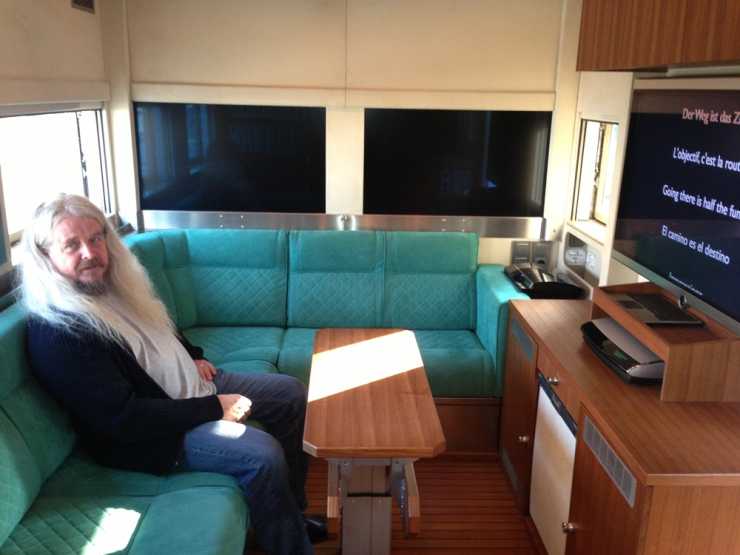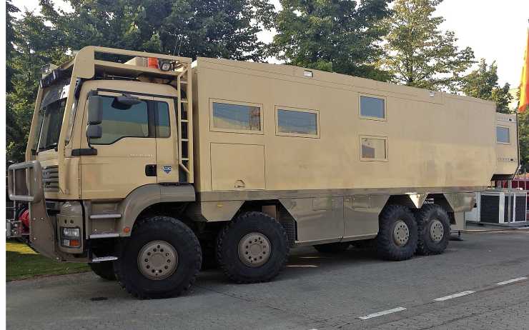 Utrustning: Slide i bak, Satellitmottagning för TV/internet, 7 monitorer varav 4 i full HD, tvättmaskin, hydraulisk trappa, GPS-tracking och så vinsch förstås.