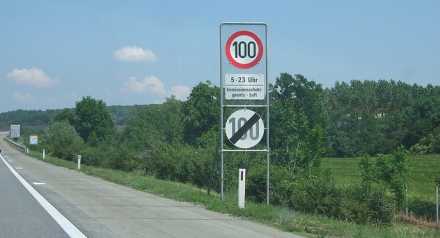 För samtliga vägar kan det vara lägre hastighetsgräns vid regn, tilläggstavla "bei Nässe"