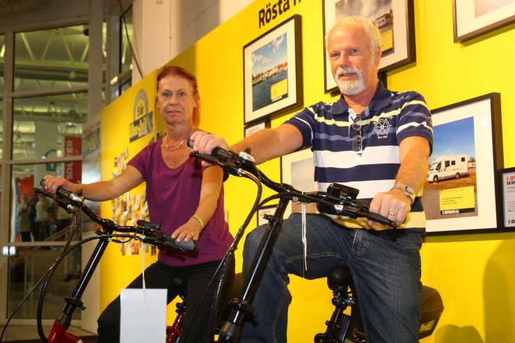 Första vinsten gick till Kent Jansson från Tidaholm och han valde den svarta EcoRide elcykeln. Nästa med tur var Monica Andersson från Ekerö som fick en röd elcykel. Elcyklarna har ett värde av 11 000 kronor styck så självklart var båda vinnarna mer än nöjda när de rullade iväg cyklarna genom mässans gångar.