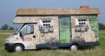 Så du som var på Elmiamässan och sökte inspiration kan helt enkelt konstatera att det var meningslöst. Något så här fantasifullt fanns inte att finna. Visserligen har Eura Mobil gjort en charmig modern variant på samma tema men riktigt så här stuglik är den dock inte.