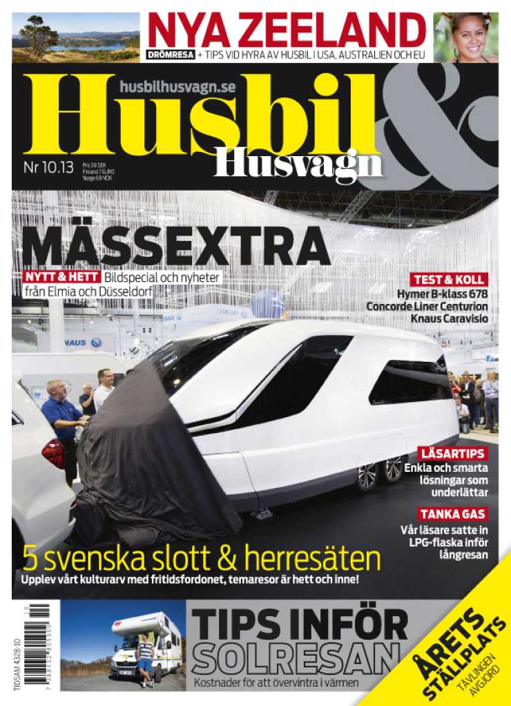 Resor: .Resor med tema är populärt och vi har ett reportage om en resa där ett antal svenska slott och herresäten besöks. Dessutom en riktig drömresa till Nya Zeeland. Just det landet är enligt undersökningar svenskarnas drömresmål och givetvis är det många som vill åka husbil i det avlägsna landet. Läs reportaget och få tips om ställen att se, hur du tar dig dit och var du kan hyra husbil i Nya Zeeland. Dessutom har vi en artikel om att hyra husbil i USA och Australien och södra Europa för dig som vill fly kylan.