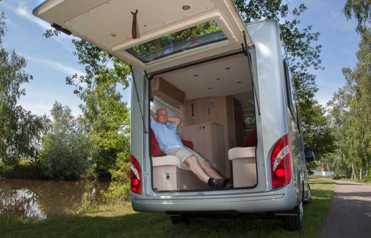 I körläge, med både dusch och säng undanfällda, går det enkelt att lasta bilen som vanligt genom bakdörrarna.