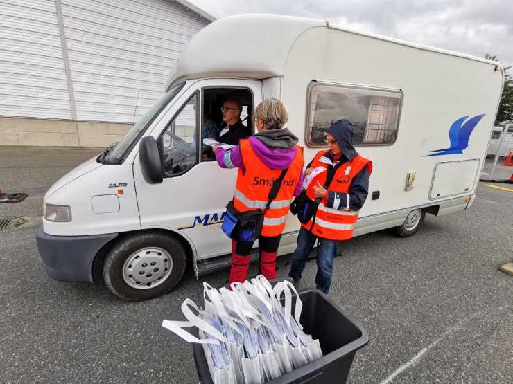 Vi tog en promenad ut på Elmias parkering som fylls på hela tiden. De flesta satt dock i sina bilar även om hundarna måste ut och rastas!