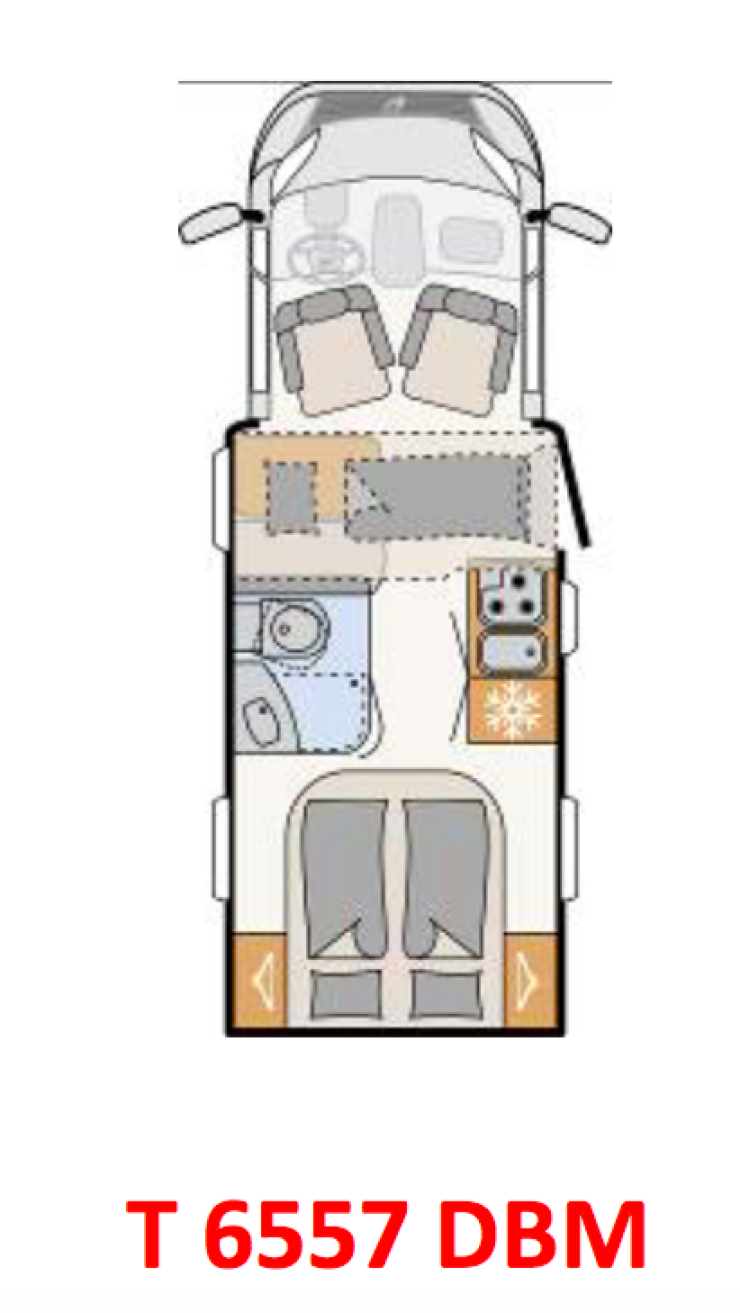 Till den nya planlösningen T/I 6617 EB som presenterades på CMT-mässan finns ytterligare tre planlösningar för modellserien Trend det nya modellåret 2019. Den minsta i gänget med en längd på 660 cm är T/I 6557 DBM med en queensäng och stort badrum. Som tillval kan man beställa en extra nedsänkbar enkelsäng över soffgruppen för T-modellen. De båda andra nya planlösningarna är alla 740 centimeter långa och har en loungesittgrupp med soffliknande dynor. Dusch och toalettrum ligger här mittemot varandra och kan öppnas upp till ett stort raumbad och sovrummet avgränsas från främre delen med skjutdörr. T/I 7057 DBL är här queensängs- och T/I 7057 EBL enkelsängsvarianten.