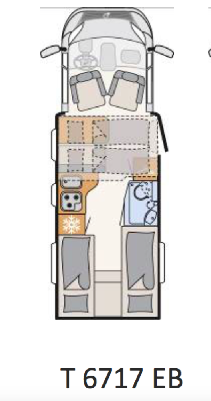 Jämfört med Trend T/I 6717 EB, även det en enkelsängshusbil i den omtyckta husbilsserien med samma mått, har nya T/I 6617 EB ett större badrum inklusive duschkabin. Man får känslan av ett mer öppet rum när man går in i fordonet eftersom siktperspektivet är fritt. Som tillval kan den delintegrerade också beställas med en extra (nedfällbar) enkelsäng. Den integrerade har en nedsänkbar säng för två vuxna som standard.