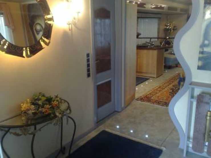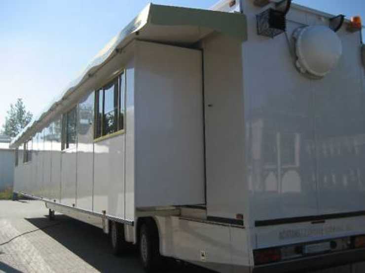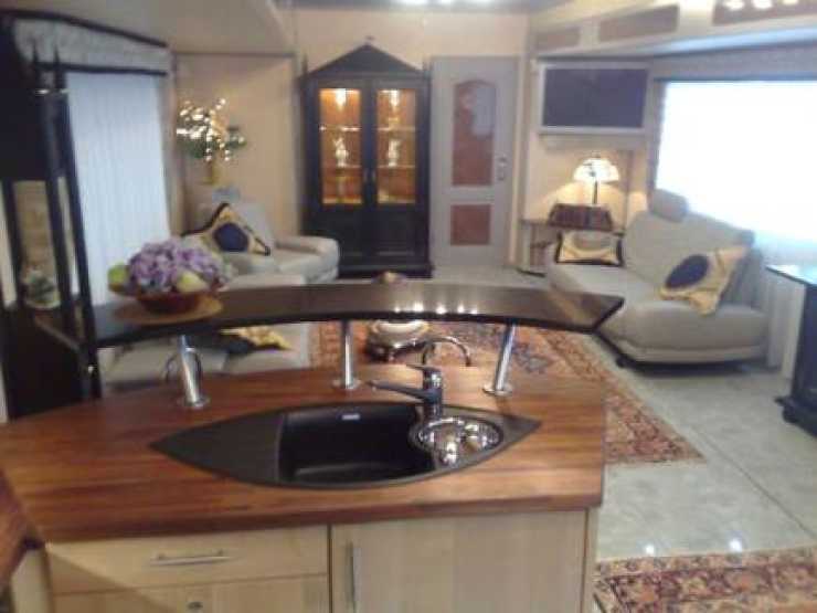 Denna 18-metersvagn har självklarheter som tvättmaskin, torktumlare, ugn och diskmaskin i standardutförande. På tillbehörslistan finns helikopterplatta eller båtgarage. Vagnen kopplas bakom en lastbil och räknas till en av världens största.