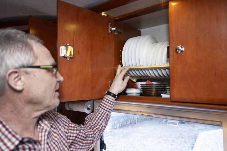 – Det härliga med det här livet är att vi så snabbt är resklara, säger Kurt. Det är bara att säkra knapparna på skåpen i kök- och bodelen, och dra iväg. Det är inget stuvande som i en båt.