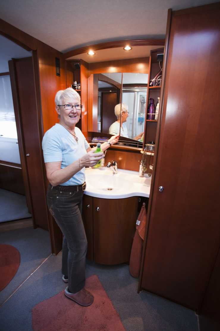 – Badrummet är en av de bästa delarna i bilen, tycker Kurt. Det är många som inte har den här dimensionen ens i en villa eller lägenhet.