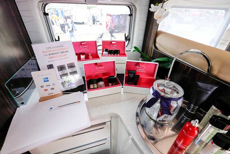 I denna läckra Bürstner erbjuder hudvårdsföretaget Elemis på gratis konsultationer.