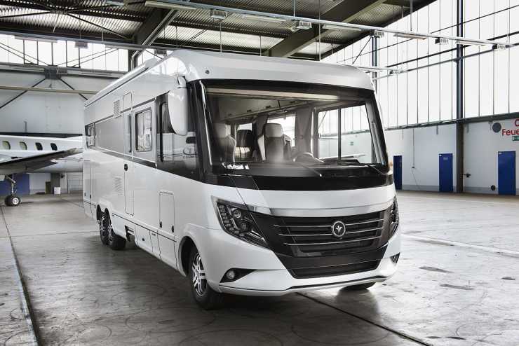 Exteriören på denna lyxhusbil från tyska staden Polch har genomgått en rejäl ansiktslyftning. Niesmann+Bischoff Arto baseras på Fiat Ducato med ett lågprofilchassi från Al-Ko .