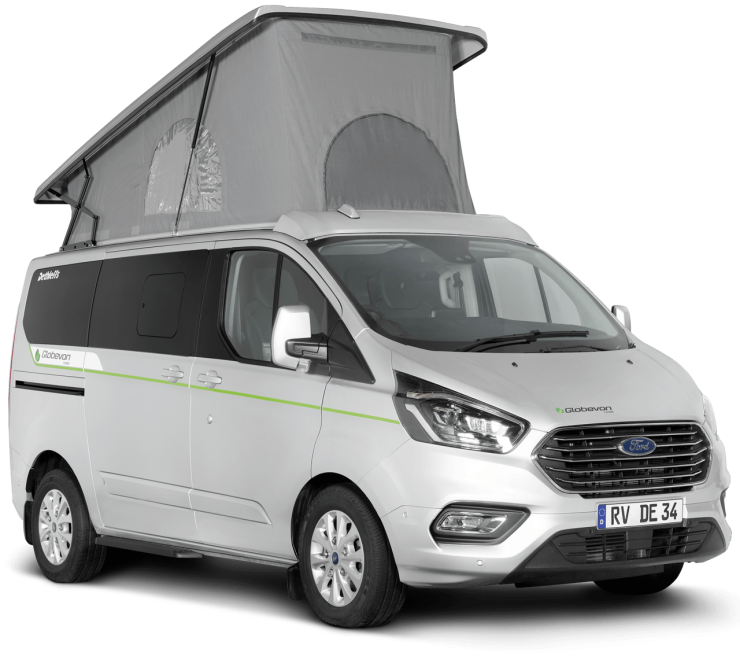 Globevan e.hybrid är en 497 centimeter lång mini-campervan baserad på Ford Custom med fyra sovplatser vilket gör att den kan kategoriseras som en äventyrsbil lämplig för kortare turer i närområdet men kan även användas som transportbil i vardagligt bruk då inredningen kan anpassas. Bredden utan speglar är 198 och höjden 209 centimeter. Ståhöjden anges till 139 men ökar till 244 centimeter vid B-stolpen (skjutdörren) när taket är uppfällt. Totalvikten är 3 240 kilo och tjänstevikten 2 830 vilket ger en lastkapacitet på 410 kilo.