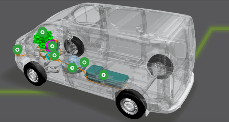 Drivningen sker med en elmotor via ett batteri på 13,6 kWh vilket möjliggör en rent elektrisk och därmed lokalt utsläppsfri räckvidd på upp till 50 kilometer, totalt är räckvidden 500 kilometer. Förbränningsmotorn är en bensindriven 1,0 liters EcoBoostmotor som fungerar som en räckviddsförlängare som laddar bilens Li-ion högspänningsbatteri under körning. Kombinationen av motorerna har ett vridmoment på 355 Nm och en effekt på 92 kW (126 hk).