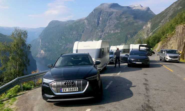Så hur påverkades räckvidden när husvagnarna hakades på? Inte blir det som vi är vana vid, testvinnaren Tesla klarar i bästa fall drygt 30 mil, mer allmänt 25 mil. De andra två klarar 20 mil på en laddning. Testen utfördes av tre erfarna elbiltestare som körde Dalsnibba, Geiranger, Ørnevegen, Trollstigen och Atlanterhavsveien vilket betydde 1 381 kilometer, en sträcka som testförarna menar är för lång för vanligt husvagnsåkande på de tre dagar testteamet hade till förfogande. Det krävdes åtskilliga laddningar för att komma denna sträcka och som bekant tar varje laddning tid.