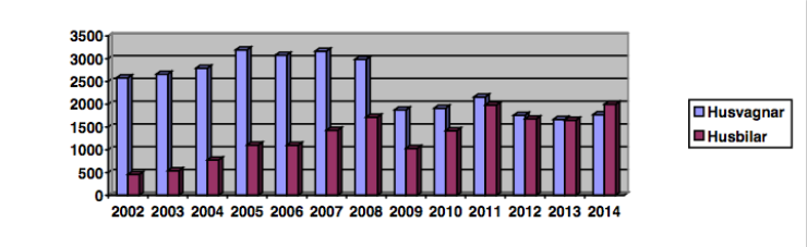 För hela kalenderåret 2013 var skillnaden 9,1%, medan det hittills i år har registrerats 12,6% fler husbilar än husvagnar. Därmed följer den svenska marknaden den trend som man kan se i de allra flesta av Europas länder.