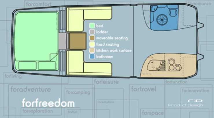 Tar man en titt i interiören visar sig en vagn som är lätt att anpassa till var och ens personliga tycke och smak. Konstruktörerna framhåller att utrymmena inuti är större än vad utsidan ger sken av.