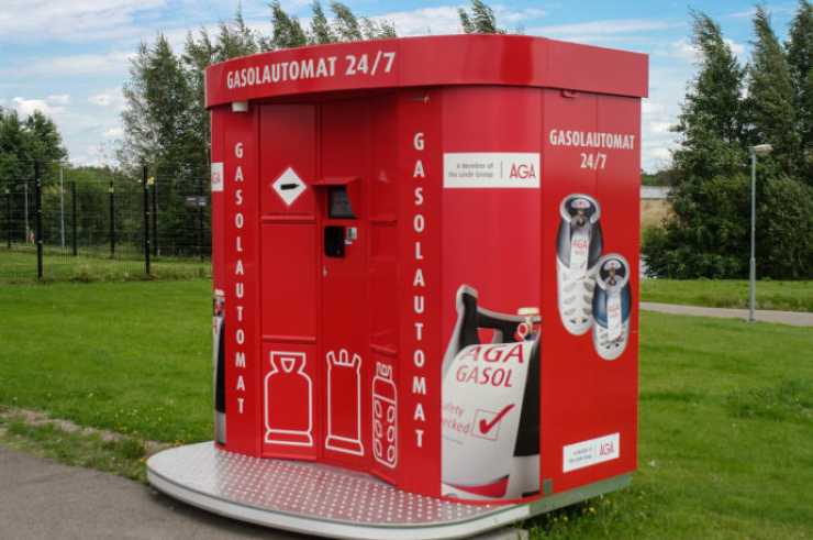 Automaterna, som har självbetjäning, är snabba och enkla att använda och kunden behöver bara följa fem enkla steg för att få en ny gasolflaska i sin hand skriver AGA i sitt pressmeddelande.