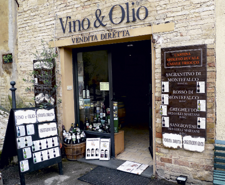 När du fyllt din kvot med fresker är det dags för andra frestelser. Som vinet bryggt på druvan Sagrantino. Den lilla vinbutiken intill porttornet, passeras på väg från ställplatsen. Där kanske du träffar den unge mannen Mauro Rettori, som lät mig smaka och sniffa på traktens ädla jordbruksprodukter.