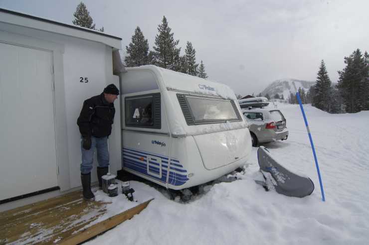 Här campar de vintertid med sina respektive. Vagnarna står uppställda i bästa sydvästläge, med sol från morgon till kväll. De båda paren känner varandra som campinggrannar även sommartid. Då står husvagnarna på samma camping nära havet i Härnösand.