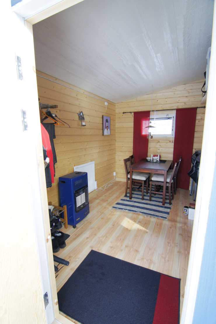 Familjen berglunds förstuga är kanske av ett enklare snitt men verkar ha en praktisk funktion: i stugan finns två våningssängar längs med ena kortsidan. Perfekt när man väntar barn och barnbarn på besök.