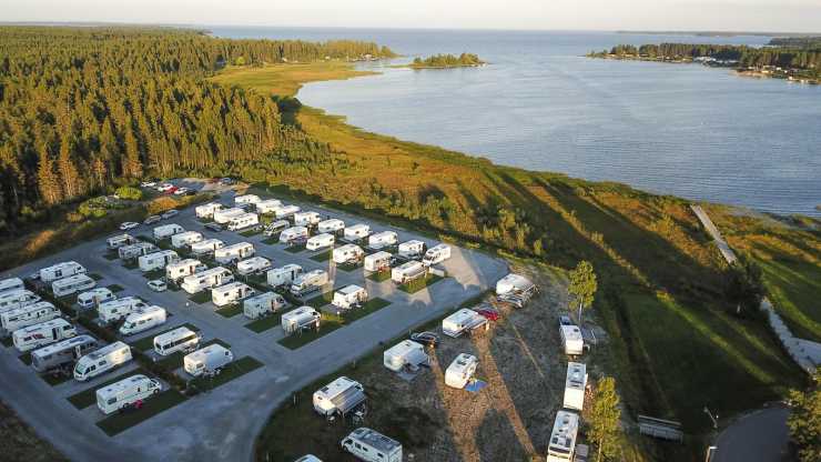 – Vi har ett otroligt fint läge alldeles vid havet och med utsikt över horisonten. Dessutom är det nära till Ica, restaurang, det finns fina promenadvägar och sommartid har vi ett populärt kafé. Vi satsar på enkelheten och har inga bommar eller kodlås, man åker bara in och tar sin plats och sedan kan man swisha sin betalning. Det är en utmaning att hålla det enkelt.