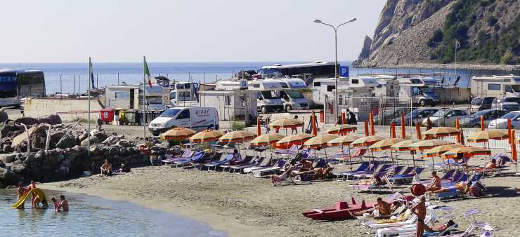 I de små orterna Deiva Marina och Levanto strax väster om Monterosso finns både campingplatser och ställplatser. Liksom i den större staden La Spezia i öster. Från dessa orter tar du sedan tåget till de fem byarna i Cinque Terre. Ty om det nu inte går att åka bil och husbil så handlar det om att ta sig fram till fots eller med tåg. Eller båt.