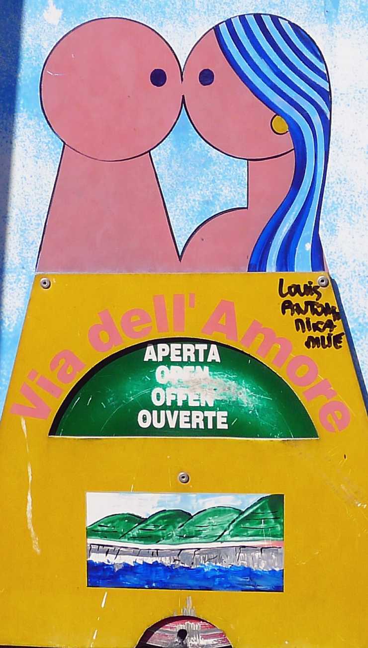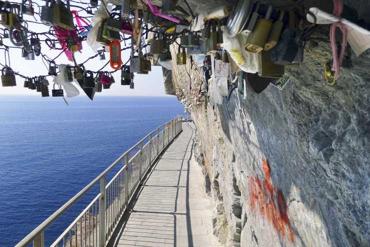 Som vid många andra romantiska vandringsleder är det tradition att de älskande paren fäster ett hänglås någonstans och sedan kastar nyckeln ner i Medelhavet för att besegla kärleken.