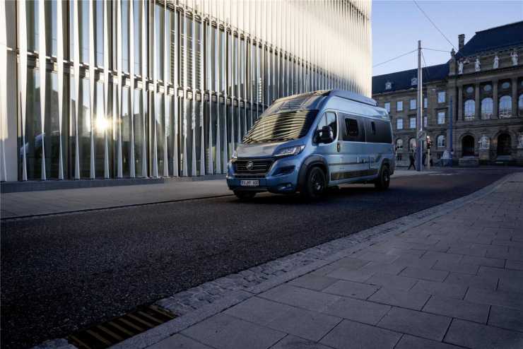 Den sportiga plåtisen Hymer Free 600 kommer till årsmodell 2020 att kunna fås antingen på Fiat Ducato eller Mercedes Benz Sprinter. Båda med framhjulsdrift.