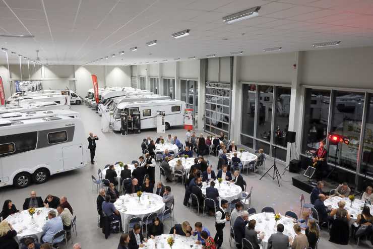 Med mycket pompa och står invigdes igår kväll Tumbo Husvagnar & Husbilar sina nya lokaler. Och vilka lokaler det är! Hallen är 7500 m2 stor och det har inte sparats på krutet.