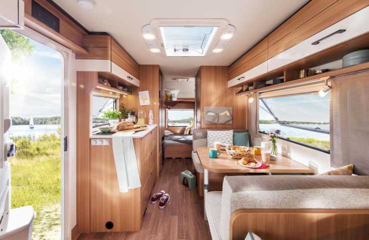 Serien Vivo finns med sju olika planlösningar från minsta, 470 D upp till stora 532 K som erbjuder sovplatser för upp till sex personer. Den nya planlösningen i 580 D har nydesignad inredning med paneler i beige och ljusa remsor ovanför de stora väggskåpen. Dessutom har den frontkök och panoramatak.