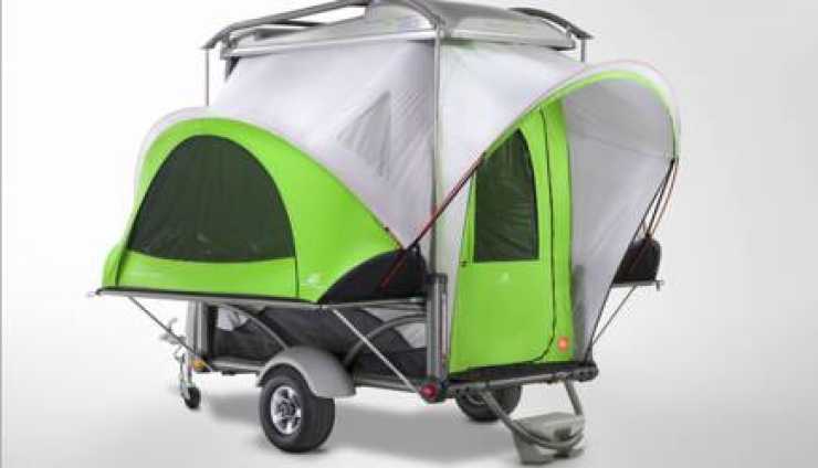 Den ledade dragstången gör att vagnen kan hållas tippad vid ombordkörning. Men smaken kostar och priset för "GO" inklusive tält och en del tillbehör är 6195 dollar.