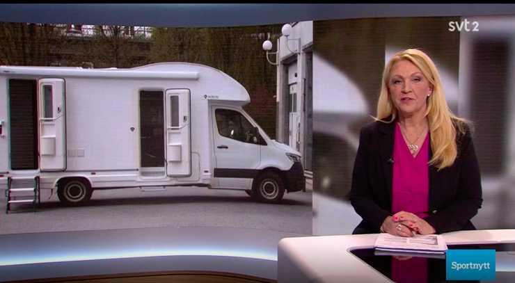 Den specialdesignade husbilen från Nordic husbilar levererades under tisdagen och ska kunna köras till olika tävlingar för att den som ska testas ska kunna lämna sitt urinprov. Husbilen behövs nu i coronatider för att kunna göra säkra tester med upprätthållandet av den sociala distasen. Inspirationen kommer från norska kolleger säger SVT i inslaget. Husbilen är hyrd under en tremånadersperiod.