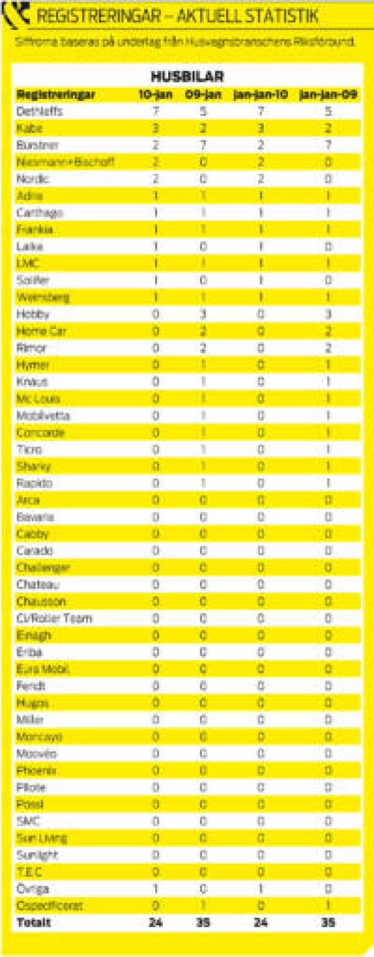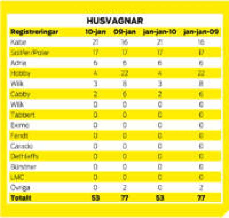 I nummer 2-2010 hamnade siffrorna på nyregistrerade husbilar och husvagnar fel. Här kommer de korrekta tabellerna.