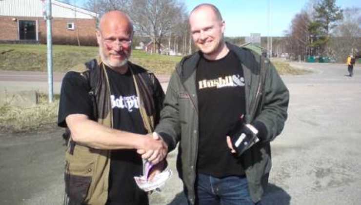 Vi följde med under 1,2 mil norrut från Söderhamn. Bara under den korta vandringen mötte massor med folk upp för att ge sina bidrag till Robert och Gert. Husbil & Husvagn passade även på att räcka över 5000 kronor till insamlingen.