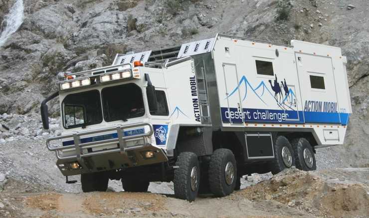 Några av Action Mobils skapelser är specialbeställda byggen och en av de dyraste blev klar 2005 och bär namnet Desert Challenger. Den 4-axlade husbilen kostade 14 miljoner kronor och byggdes till en oljeshejk som ville åka runt med familjen i lugnt kameltempo.