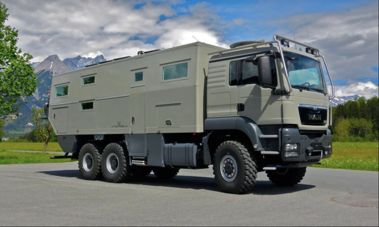 Action Mobils skapelse Globecruiser är en lyxig och stryktålig huslastbil på 19 ton med MAN:s 6-cylindriga turbodiesel på 530 hk. 6-hjulsdrift och diffbromsar på fram och bakaxeln ger god framkomlighet. Väggarna är 61 mm tjocka och isolerade med polyurethan och fönstren är både repsäkra och "okrossbara".