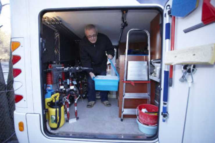 Allt onödigt inklusive sommarstugan såldes och det lilla som blev kvar ryms i husbilen tack vare en mängd finurliga förvaringslösningar.
