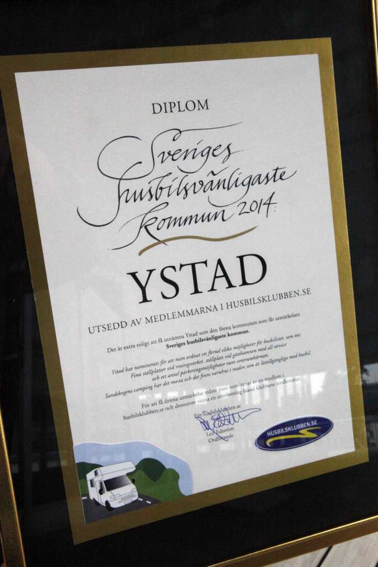 Enligt en omröstning av Husbilsklubbens medlemmar är Ystad Sveriges husbilsvänligaste kommun 2014. Ystad får priset för att de ordnat fina ställplatser och att stadens centrum därmed gjorts lättillgängligt med husbil.