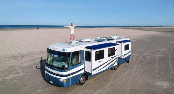 Underbar vy med strand så långt ögat kan nå vid danska Rømø. Nattetid bodde de på en ställplats och tog dagsturer till stranden.