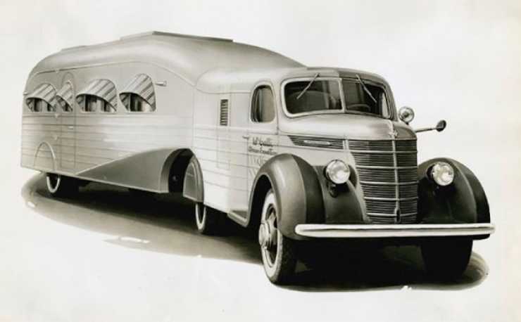 Det är långt ifrån alltid som det finns så här omfattande information om gamla mobila boenden. Här rör vi oss i gränslandet mellan husbil och husvagn och vi är i mitten på 1930-talet. Det är inte svårt att tänka sig vilken uppståndelse ekipagen orsakade så att International Harvester använde dem i sin reklam är fullt förståeligt. Gattis expedition använde två likadana fordon, designade av Count Alexis de Sakhnoffsky, byggda på 1937 International Harvester D-35 chassin, var drygt 13,4 meter långa samt vägde sina modiga 9 ton. När de användes tillsammans på campen bildade de ett lyxigt femrumsboende och var förstås hjärtat i expeditionen i det outforskade Brittiska Afrika.