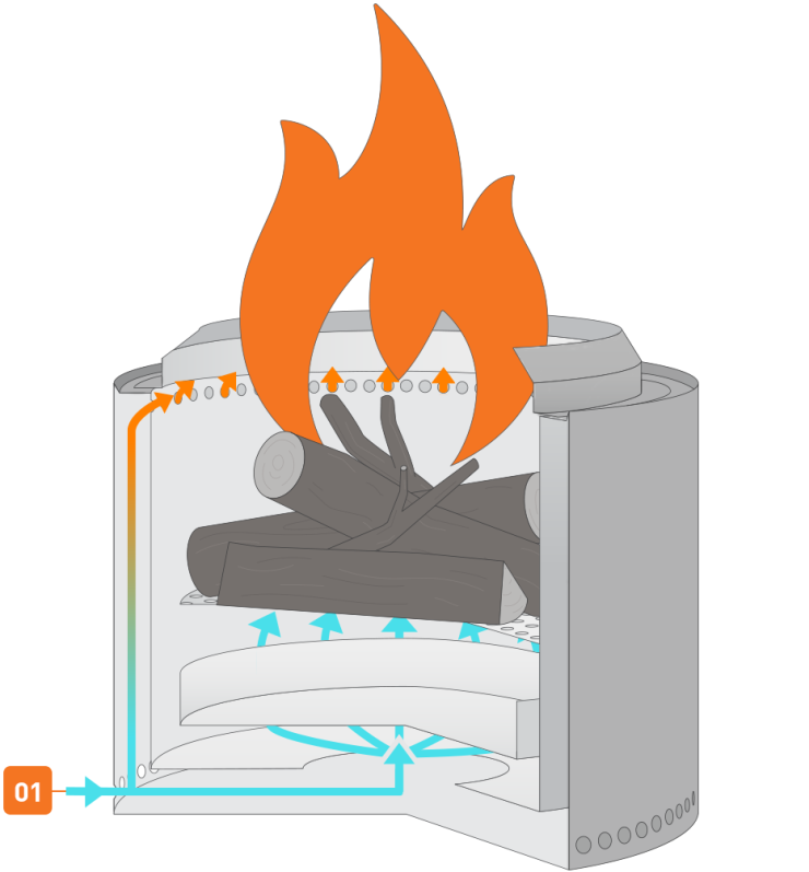 Det är en liten tunna i rostfritt stål med dubbla ytterväggar där botten är gjord i flera lager. Man lägger ved i tunnan, tänder på och får en öppen eld som i sidled begränsas av tunnans vägg. Luft sugs in underifrån och man har en öppen eld som brinner lugnt och inte ger ifrån sig någon rök. Botten på tunnan förblir riktigt sval, att ställa den på en trätrall eller annat brännbart material går alldeles utmärkt, det går att ta i botten utan att bränna sig eller ens tycka att den är het.