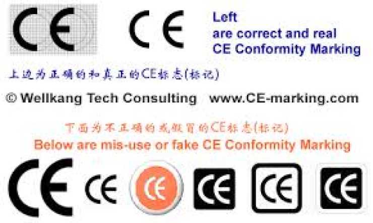 Kolla alltid att den produkt du köper är CE-märkt. En del produkter saknar CE-märkning, som denna, en del är felaktigt märkta. Notera att det normalt är tillverkaren som står för märkningen! Observera att nedre radens CE-märkningar är bedrägeri, en CE-märkning ser endast ut som de övre.