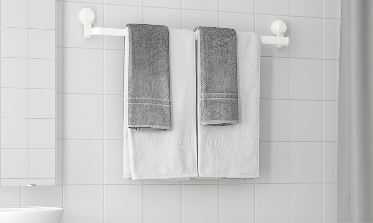Är du inte nöjd med antalet hängare för handdukar och annat som inte är alltför tungt kan du komplettera med serien Tisken från IKEA. Inget borrande eller annat som förstör ytmaterialet, den fästs med sugproppar.