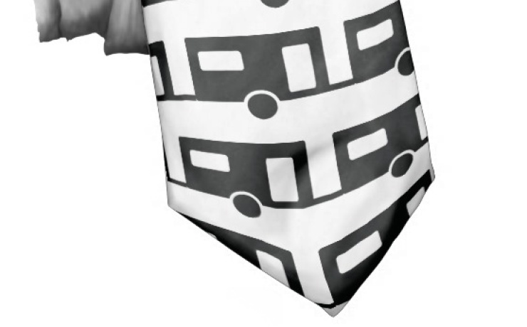 Den första slipsen är dekorerad med svarta husvagnar en masse. Passar i alla sammanhang men framför allt på kvällen på campingen när vinet och tilltugget dukas fram. En klart stämningshöjande accessoir för den som vill reta husbilsfolket. Slipsen hittar du här och den kostar 325 kronor.