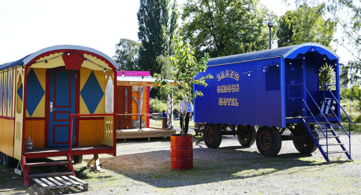 Cirkusvagnarna är byggda av rivningsmaterial med fokus på hållbarhet.